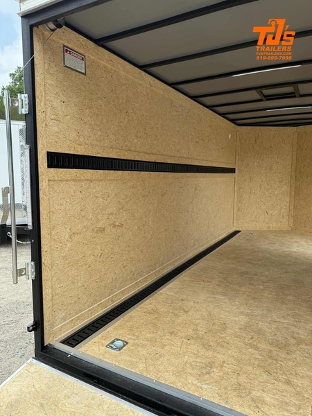 Etrack and walls and floors Exterior Lighting 6″ main frame 16 inch OC crossmembers 2-5/16 inch coupler Aluminum Exterior 2k Tongue jack 1×1.5 inch tubing roof members Semi Screwless exterior Stabledeck 3/8 inch walls & 3/4 inch floors Automatic interior LED light 3/16 inch 4inch steel main tube 2ft v nose with 24 inch ATP stone guard 3500lb leaf spring drop axles ST205 15″ radial tires Cobra lines rear hoop and tongue 48 inch wide entry side door 4 floor recessed d rings