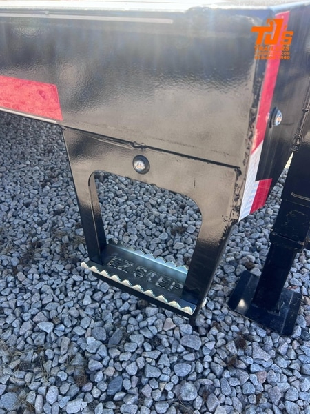16 inch On-center Stake Pockets w/ 3/8 inch Rub Rail Mud Flaps 8 ft Self Store Ramps Step To Deck Both Sides 2 inch Treated Yellow Pine Floor Floor Double Screwed every 4 Feet Leaf Springs w/ Equalizers & Cambered Axles Spare Tire & Wheel w/ Holder Mounted on Neck Rear Receiver Hitch Molded 7-way RV-Type Plug BreakAway Switch with Battery Wiring Ran Through Conduit w/ Grommets DOT Safety Tape LED Lights w/ Midway Turn Signal Dual 12K Jacks w/ Adjustable Drop Legs 36 inch Removable Safety Chains w Weather Hangers Deburred and Hand Prepped before Painting Phosphate Washed before Painting Finish is a 2 Component Epoxy Primer and 2 Component Polyurethane Paint 10 ft Torque Tube 3 Inch Channel Crossmembers on 16 Inch Caters