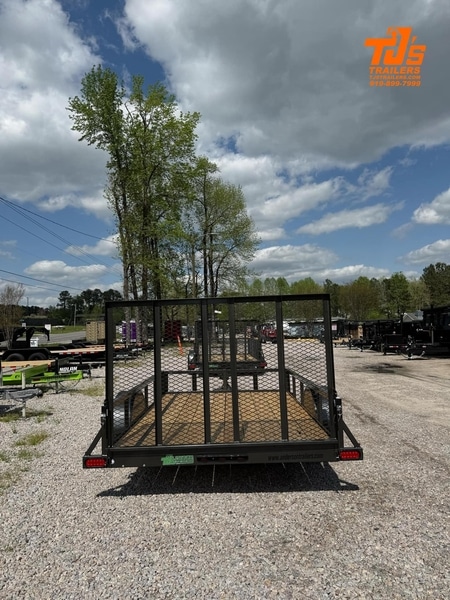 SINGLE AXLE UTILITIES 2900 GVRW 3500 GAWR 2″ ADJUSTABLE BOLT ON COUPLER 2K TOP WIND JACK 4″ CHANNEL WRAPPED TONGUE ON 12′ OR LONGER 4″ CHANNEL STRAIGHT ON 10′ ONLY! 3/16″ ANGLE FRAME 3X2X3/16″ ANGLE CROSSMEMBERS 24″ ON CENTER 2X2X1/8″ ANGLE UPRIGHTS 2X2″ 14GA TUBE TOP RAIL SPARE MOUNT 9X32″ ROLL FORMED STEEL BACKED FENDERS 3500LB IDLER AXLE TIRES ST205/75R15 LOAD RANGE C 2″ PRESSURE TREATED PINE DECK LED LIGHTS 4 WAY FLAT VEHICLE PLUG POWDER COAT PAINT 4′ SWING DOWN GATE *EXPANDED METAL SIDES ON MESH SIDED MODELS ONLY