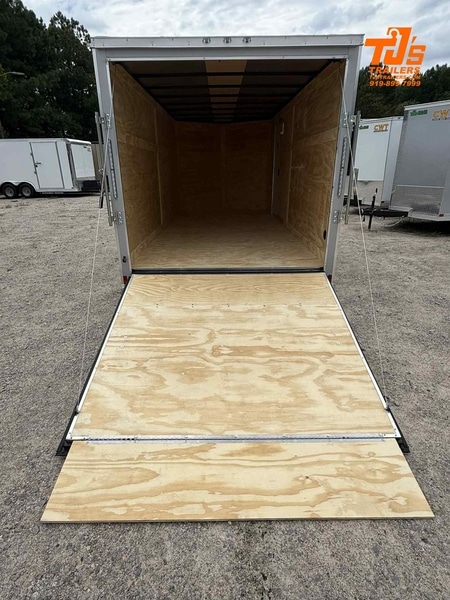 V Nose Standard Features: 15″ Radial Tires 32″ RV Style Side Door With Flush Lock V-Nose With Vertical ATP Trim 3500LB Spring Brake Axles with 4″ Drop, EZ Lube Hubs 24″ Stoneguard .024 Metal Exterior 2-5/16″ Coupler Aluminum Fenders 3/4″ Plywood Floor / Painted Underneath Premium 3/8″ Plywood Sidewalls 1″ x 1.5″ Tubing Walls and Ceiling Insulated Ceiling 2000 LB Tongue Jack 2″ x 4″ Tubing Main Rails 12 V Dome Lights with Switch Sidewall Vents LED Lights Wall Crossmembers 16″ On Center Floor Crossmembers 16″ On Center Roof Crossmembers 24 On Center Semi- Screwless Metal Exterior 5 year warranty (see warranty disclosures for coverage)