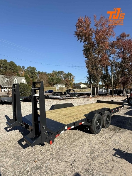 2-5/16″ ADJUSTABLE COUPLER 6″ CHANNEL WRAPPED TONGUE SAFETY CAHINS 12K TOP WIND JACK 6″ CHANNEL FRAME 3″ CHANNEL CROSSMEMBERS 3/16″ FABRICATED FRONT STOP RAIL 2″ TREATED PINE FLOOR REMOVEABLE DOUBLE BROKE FENDERS 5′ STAND UP RAMPS 2′ DOVETAIL 4-5/8″ WELDED D RINGS LED LIGHTS SEALED WIRING HARNESS DUAL 7K BRAKE AXLES