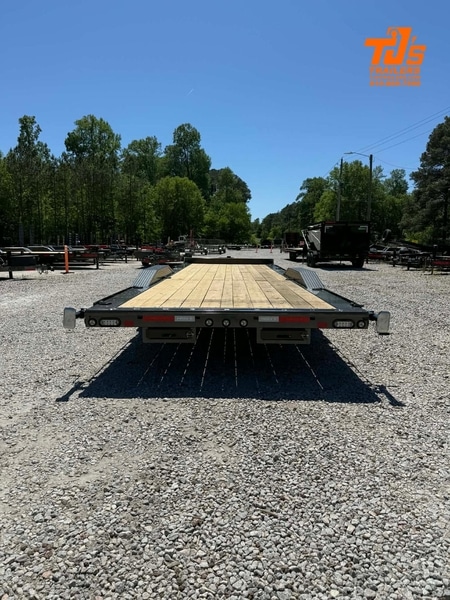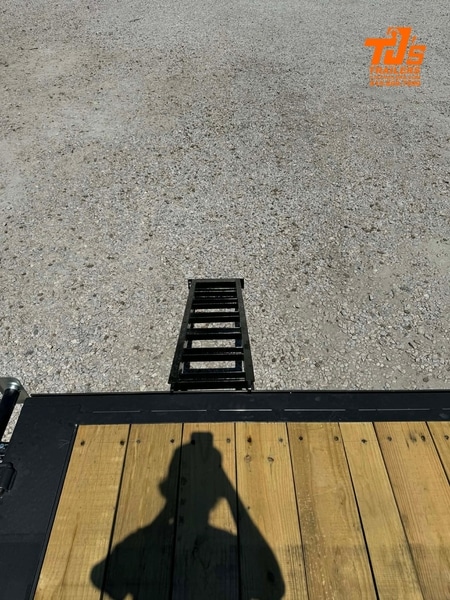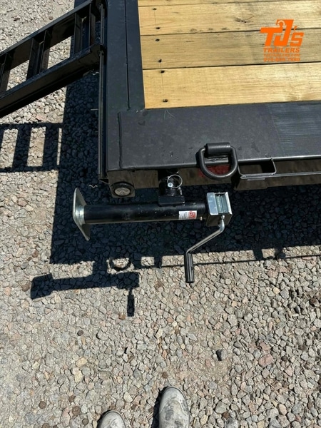 17.5K GVRW 2-5/16″ ADJUSTABLE COUPLER 10K DROP LEG JACK 8″ CHANNEL WRAPPED TONGUE WITH TOOLBOX 8″ CHANNEL FRAME 3″ CHANNEL ON 12″ CENTER CROSSMEMBERS STAKE POCKETS AND RUBRAIL 2′ DOVETAIL WITH STAND UP EQUIPMENT RAMPS DUAL 8K ELECTRIC BRAKE AXLES SLIPPER SPRING SUSPENSION 215/75r17.5 TIRES DRIVE OVER FENDERS LEDS AND SEALED WIRING HARNESS PULL OUT REAR RAMPS WITH STAB JACKS