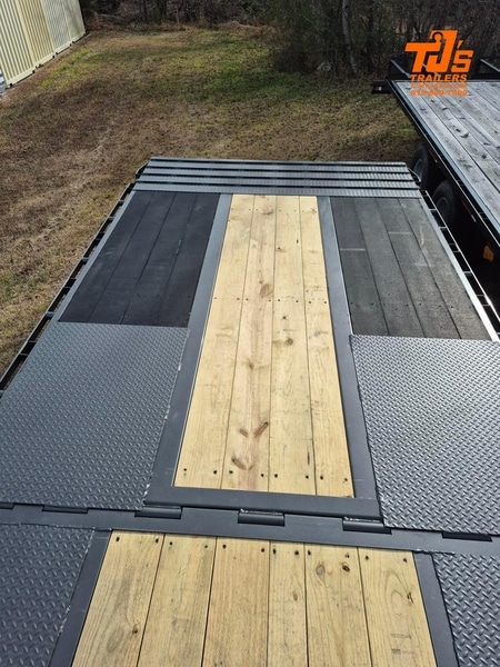 25990 GVRW 2-5/16″ 30K GOOSENECK ROUND COUPLER DUAL HYDRAULIC JACKS ENGINEERED NECK WITH FRONT TOOLBOX WINCH PLATE AND SPARE MOUNT ENGINEERED I BEAM MAIN FRAME WITH TORQUE TUBE 3″ IBEAM ON 12″ CENTER CROSSMEMBERS 6″ CHANNEL OUTER FRAME 12′ HYDRAULIC DOVETAIL WITH BLACKWOOD ON RUNNERS AND TRACK BARS ON KNIFE EDGE 2-15K ELECTRIC/HYDRAULIC BRAKE AXLES HDSS SUSPENSION DUAL 215/75R17.5 TIRES (9 TOTAL) 2X8 TREATED WOOD FLOOR LED LIGHTS SEALED WIRING HARNESS 1X48″ SIDE MOUNT TOOLBOX FOR HYDRAULICS WIRELESS REMOTE AGM GROUP 31 BATTERY 2 REAR FACING CARGO LIGHTS SPARE TIRE